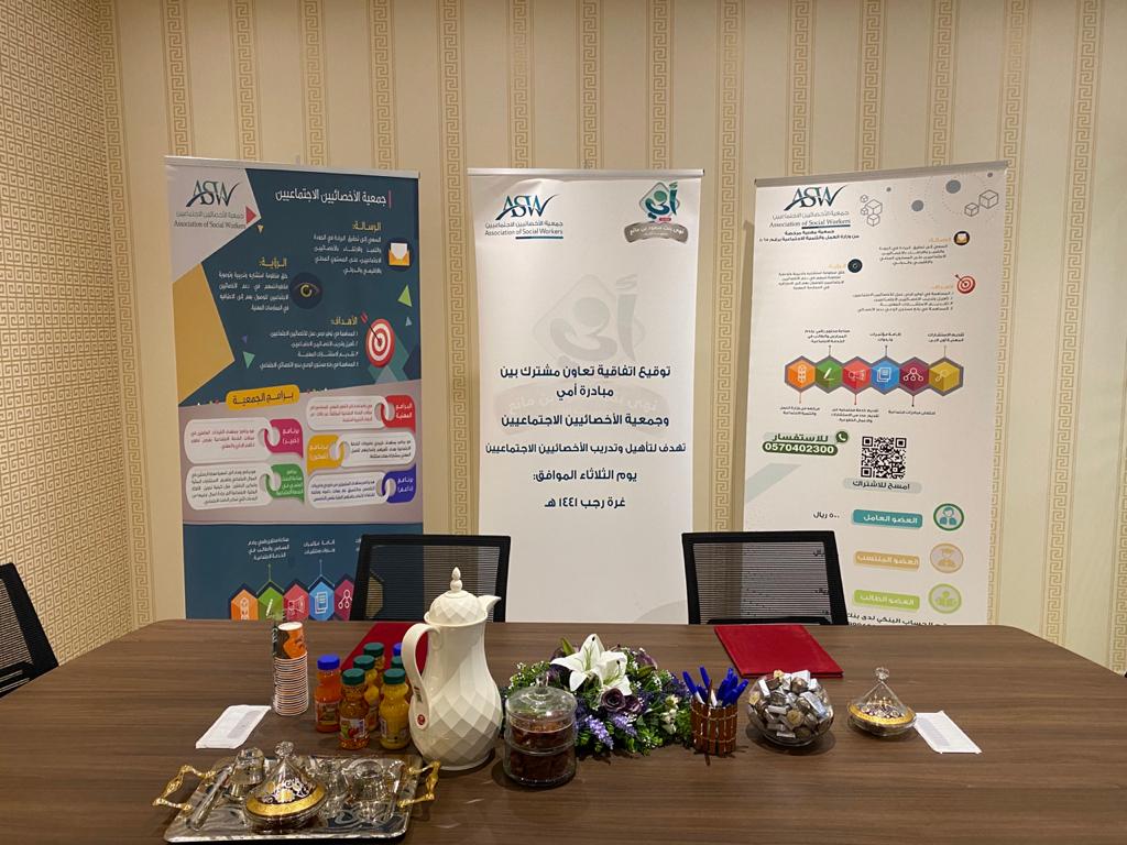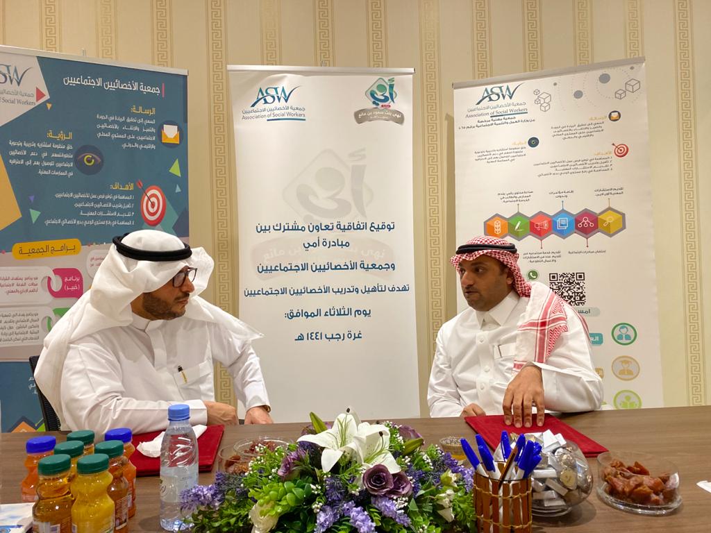 وقعت جمعية الأخصائيين الاجتماعيين ومبادرة “أمي”  مساء هذا اليوم مذكرة تفاهم مشترك، تهدف لدعم أطر التعاون بين الطرفين في مجال تدريب وتأهيل الأخصائيين الاجتماعيين، وستتكفل مبادرة “أمي” برعاية برنامج الدورات التدريبية والتي تستهدف تأهيل الأخصائيين الاجتماعيين بما ينعكس على رفع جودة الأداء.