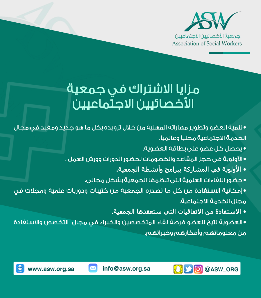 مزايا الاشتراك في جمعية الأخصائيين الاجتماعيين