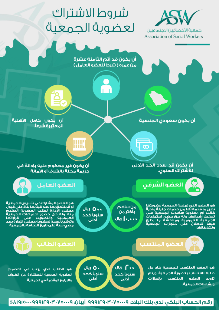شروط الاشتراك وتوضيح العضويات لجمعية الأخصائيين الاجتماعيين