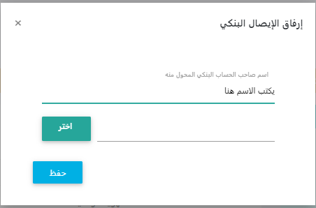ويتم الضغط على السحابة الزرقاء ثم ستظهر لكم نافذة منبثقة يتم من خلالها كتابة اسم صاحب الحساب وارفاق صورة التحويل: