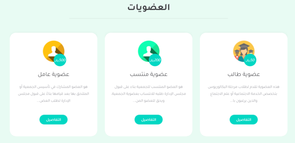 عضو طالب: برسم: 50ريال تدفع مرة واحدة سنوياً، تفاصيل ومزايا عضوية طالب (socialworkers.org.sa)
