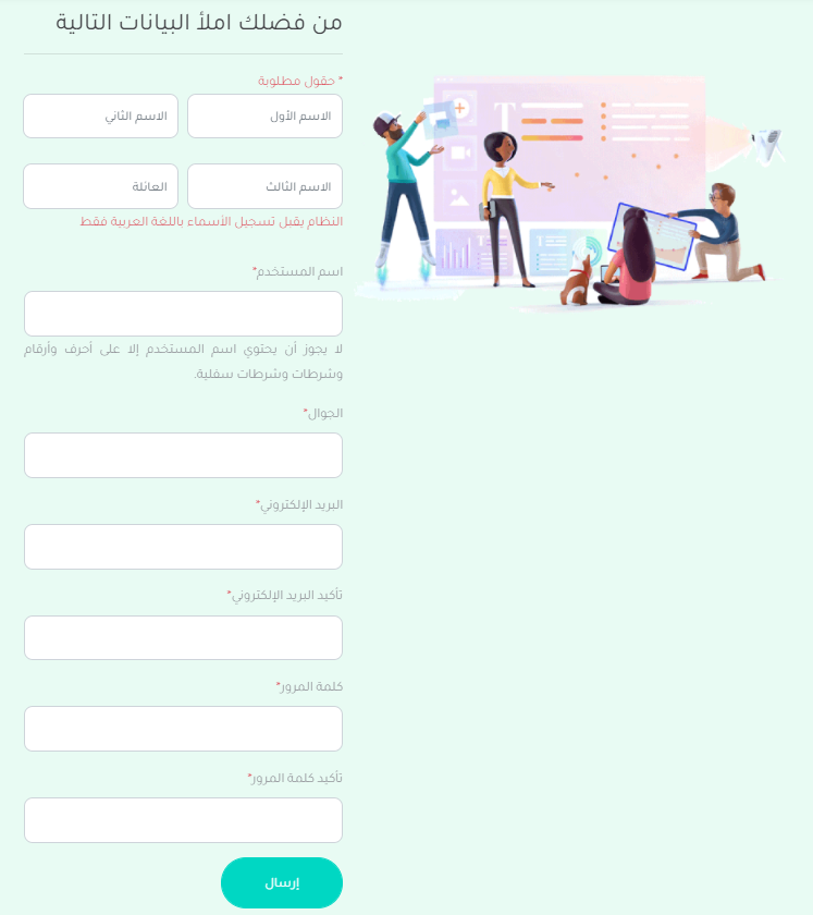 ويتم تعبئة البيانات الأولية والتي تحتوي على البريد والاسم ورقم الجوال: